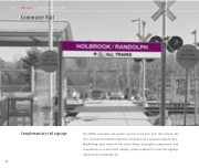 The MBTA commuter rail system consists of 10 lines and 130 stations. All lines are brand-identified with the commuter rail’s signature purple color. Wayfinding signs draw on the same library of graphic components and conventions as used on the subway system, adapted to serve the signage needs of the commuter rail.