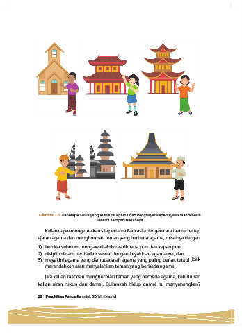 ajaran agama dan menghormati teman yang berbeda agama, misalnya dengan