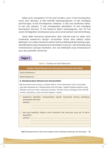 Lembar Kerja Wawancara tentang Pemenuhan Hak Anak
