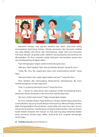 Bu Guru mempersilakan Pigey berbicara. Dengan dialek Papua yang khas,