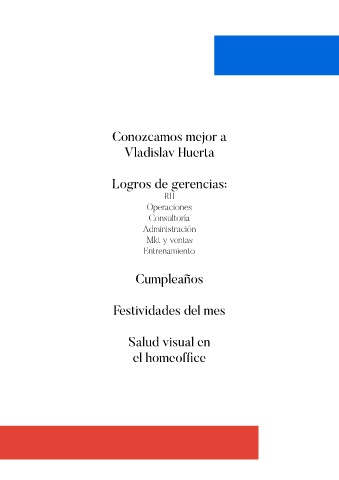 Conozcamos mejor a Vladislav Huerta Logros de gerencias: RH Operaciones Consultoría Administración Mkt y ventas Entrenamiento Cumpleaños Festividades del mes Salud visual en el homeoffice