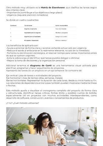 Otro método muy utilizado es la Matriz de Eisenhower, que clasifica las tareas según