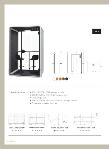 PH2 Speech intelligibility Frequency response Sound Insulation test Reverberation time test רובידה תודח םירדת תבוגת לוקה דודיב תקידב דוהדה ןמז תקידב 11 S t atu 11 Statuss