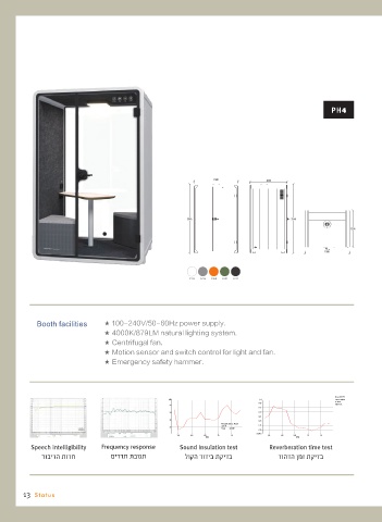PH4 Speech intelligibility Frequency response Sound Insulation test Reverberation time test רובידה תודח םירדת תבוגת לוקה דודיב תקידב דוהדה ןמז תקידב 13 S t atu s 13 Status