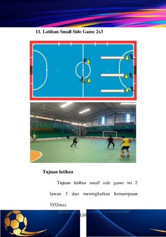 11. Latihan Small Side Game 2x3 Tujuan latihan Tujuan latihan small side game ini 2 lawan 3 dan meningkatkan kemampuan VO2max 110