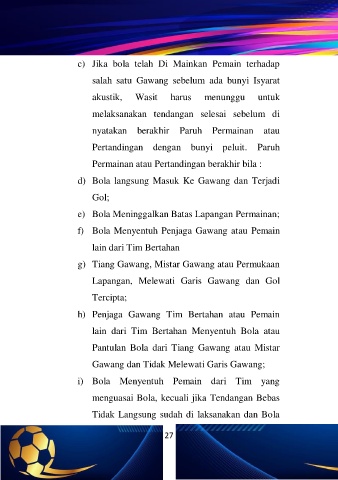 c) Jika bola telah Di Mainkan Pemain terhadap