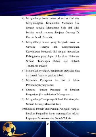 4) Menghalangi lawan untuk Mencetak Gol atau