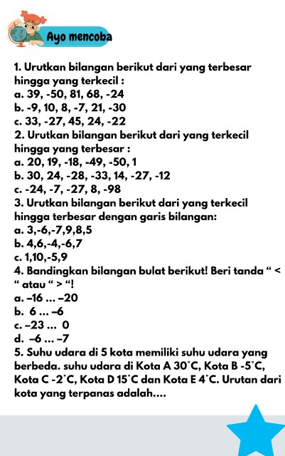 Kota C -2°C, Kota D 15°C dan Kota E 4°C. Urutan dari