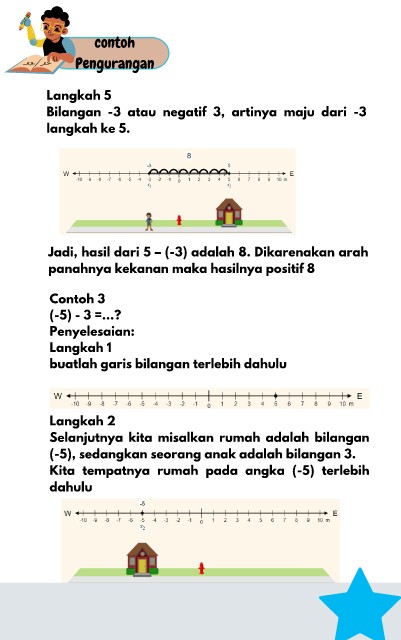 Jadi, hasil dari 5 – (-3) adalah 8. Dikarenakan arah