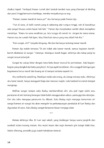 bersih dilakukan di sungai.” Katanya. Meskipun masih kaget, akhirnya aku tetap pergi ke