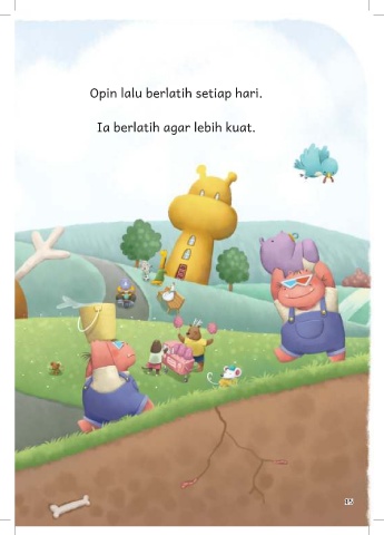 Opin lalu berlatih setiap hari. Ia berlatih agar lebih kuat. 15 1 5