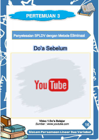 PERTEMUAN 3 Penyelesaian SPLDV dengan Metode Eliminasi Do’a Sebelum Video 1.Do’a Belajar Sumber : www.youtube.com 16