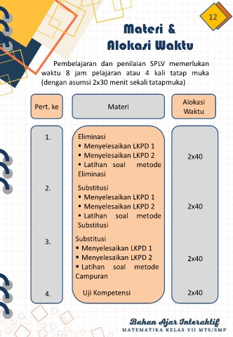 waktu 8 jam pelajaran atau 4 kali tatap muka