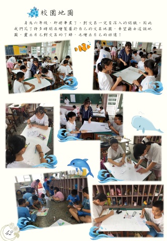 校園地圖 身為六年級,即將畢業了,對文昌一定有深入的認識。因此 我們花了許多時間在繪製屬於自己的文昌地圖,希望藉由這個地 圖,畫出自己對文昌的了解,也繪出自己的回憶!