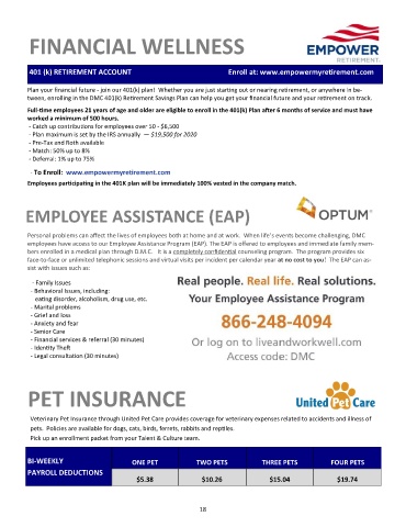 tween, enrolling in the DMC 401(k) Retirement Savings Plan can help you get your financial future and your retirement on track.