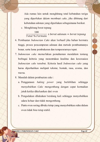 6. Pembuatan Indonesian Cake akan berhasil jika bahan bermutu