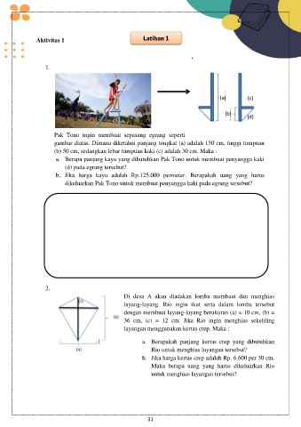 a. Berapa panjang kayu yang dibutuhkan Pak Tono untuk membuat penyangga kaki