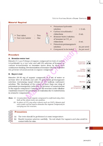 tetrachloride in a test tube and add 2% solution of bromine in hydroxide