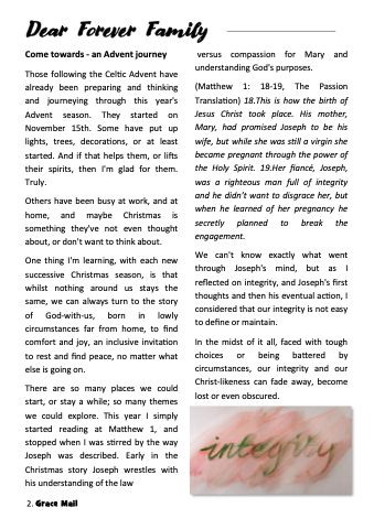 In the midst of it all, faced with tough choices or being battered by circumstances, our integrity and our Christ-likeness can fade away, become lost or even obscured.