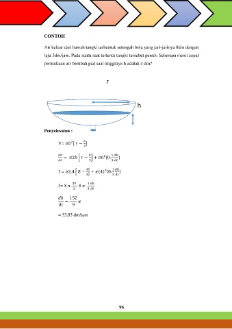 Air keluar dari bawah tangki terbentuk setengah bola yang jari-jarinya 8dm dengan