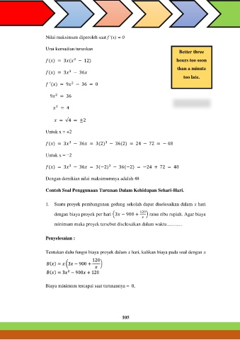 Nilai maksimum diperoleh saat f '(x) = 0