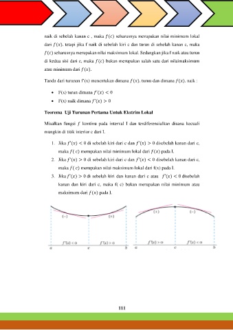 dari ( ). tetapi jika f naik di sebelah kiri c dan turun di sebelah kanan c, maka