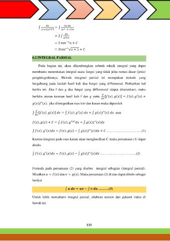 Formula pada persamaan (2) yang disebut integral sebagian (integral parsial).