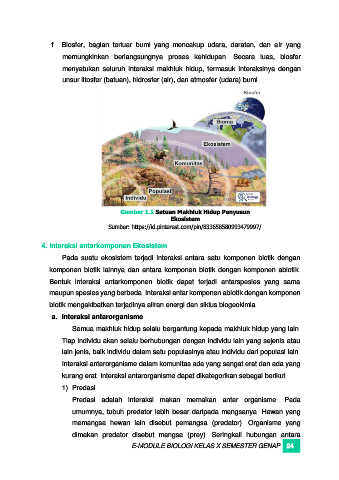 Pada suatu ekosistem terjadi interaksi antara satu komponen biotik dengan