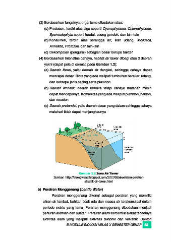 (a) Daerah litoral, yaitu daerah air dangkal, sehingga cahaya dapat