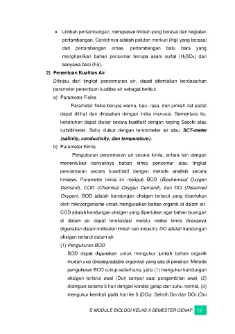 kimiawi. Parameter kimia ini meliputi BOD (Biochemical Oxygen