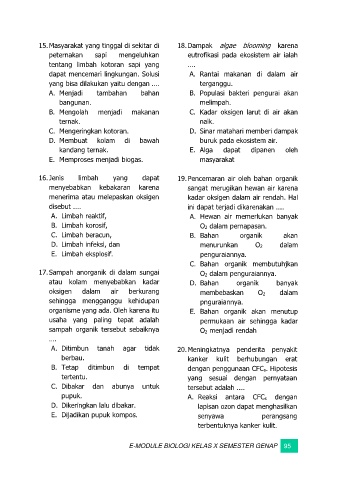 16. Jenis limbah yang dapat 19. Pencemaran air oleh bahan organik