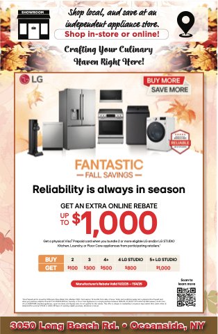 1Visa Prepaid card is issued by JPMorgan Chase Bank, N.A., Member FDIC. Card expires 12 months from date of issue. Terms and conditions apply. Get a physical Visa Prepaid card when you purchase eligible LG and/or LG STUDIO Kitchen, Laundry, or Floor Care appliances in a single purchase between 10/2/25–11/4/25. LG Countertop Microwaves, LG Air Care, all LG SIGNATURE branded appliances, open-box items and display units do not qualify for this rebate. This offer is subject to availability. Consumers may submit their claim online at: www.LGoffers.com by 1/4/26 or within 30 days of receiving eligible purchase, whichever is latest.