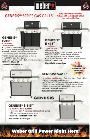 3 and 4 stainless steel burners Weber’s All-New GENESIS® GRILLS have high-end finishes.