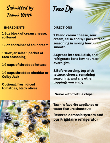 1.Blend cream cheese, sour cream, salsa and 1/2 packet taco seasoning in mixing bowl until smooth.