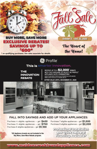 *Rebate in the form of a GE Appliances Visa® Prepaid Card with the purchase of 4 or more eligible GE ProfileTM appliances purchased January 1, 2025 to June 30, 2025 (“Rebate