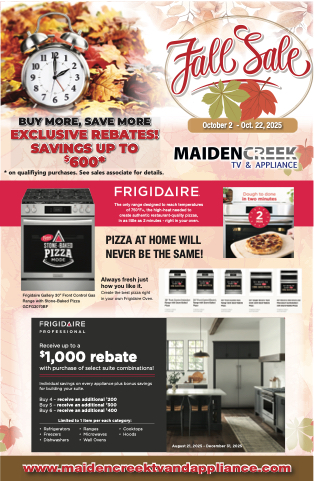www.maidencreektvandappliance.com August 21, 2025 - December 31, 2025.