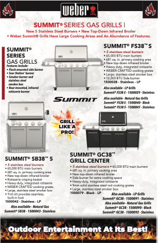 Also available - Natural Gas Grills Summit® FS38 E - 1500040 - Black Summit® FS38 S - 1500041 - Stainless