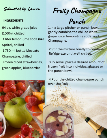 3.To serve, place a desired amount of frozen fruit into individual glasses or the punch bowl.