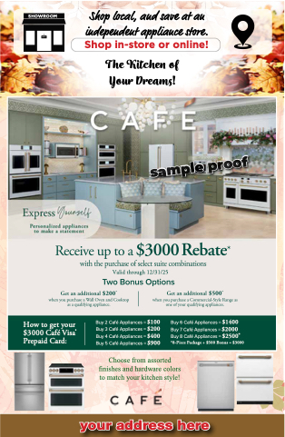 Buy 6 Café Appliances = $1400 Buy 7 Café Appliances = $2000 Buy 8 Café Appliances = $2500* *8-Piece Package + $500 Bonus = $3000