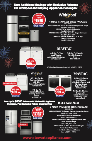 Earn Additional Savings with Exclusive Rebates On Whirlpool and Maytag Appliance Packages!