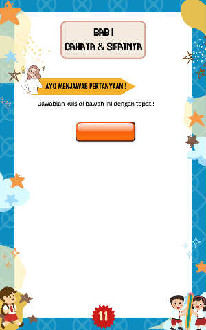 BAB I CAHAYA & SIFATNYA AYO MENJAWAB PERTANYAAN ! Jawablah kuis di bawah ini dengan tepat ! 11