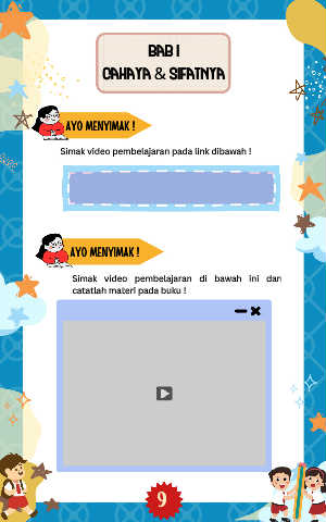 BAB I CAHAYA & SIFATNYA AYO MENYIMAK ! Simak video pembelajaran pada link dibawah ! AYO MENYIMAK ! Simak video pembelajaran di bawah ini dan catatlah materi pada buku ! 9