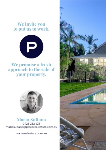We invite you to put us to work. We promise a fresh approach to the sale of your property. Mario Sultana 0428 282 223 mariosultana@placerealestate.com.au placerealestate.com.au