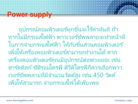 ในการจ่ายกระแสไฟฟา ให้กับชินส่วนคอมพิวเตอร ์