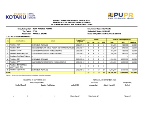 7 Pelatihan KPP KANTOR DINAS PERKIM KOTA PANGKALPINANG 2021-06-18 5 4 1 2 1,250,000 1,200,000 50,000