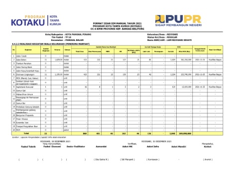 Kegiatan Total Jiwa Jiwa Perempuan MBR KK KK Miskin (40% Laki-Laki Perempuan Jumlah Nilai HOK (Rp) Terima Aset