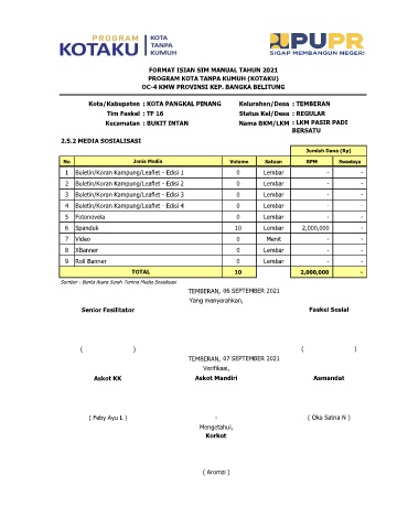 Sumber : Berita Acara Serah Terima Media Sosialisasi