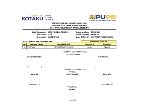 1 TEMBERAN LKM PASIR PADI BERSATU Mandiri Mandiri