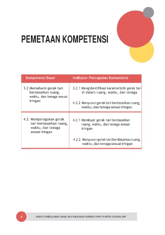 4.2 Memperagakan gerak 4.2.1 Membuat gerak tari berdasarkan