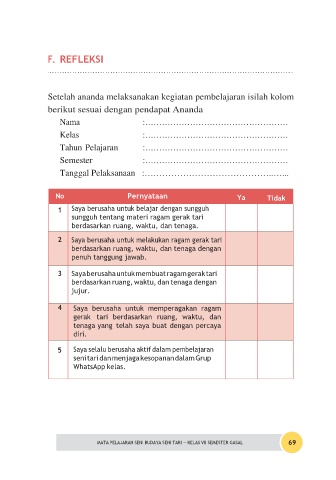 MATA PELAJARAN SENI BUDAYA SENI TARI — KELAS VII SEMESTER GASAL 69